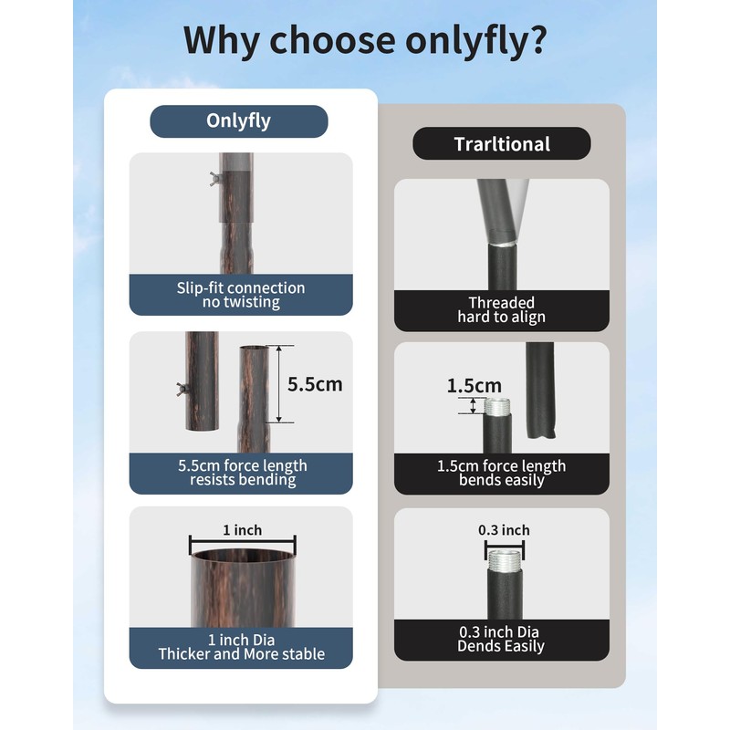 - Upgraded slip-in connection】The pole features a slip-in connection instead of a threaded one, providing key benefits: quick and easy assembly without issues like rust or improper fit issues common with threaded connections. Each pole connects deeply at 5.5 cm, enhancing bending resistance. This design prevents water penetration to avoid rust, unlike threaded connections that have gaps allowing seepage. When changing bird feed, simply lift it out, saving time and effort compared to unscrewing.