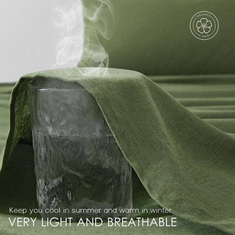 - COOL IN SUMMER, WARM IN WINTER: Linen is breathable and temperature controlling, absorbing up to 20% of its weight in moisture before it starts to feel damp, which means you'll feel cool in the summer and warm in the winter. The soft forest green linen sheets helps to fall asleep quickly and enjoy peaceful sleeping every night. Ideal sheets for hot sleepers and those who sweat excessively