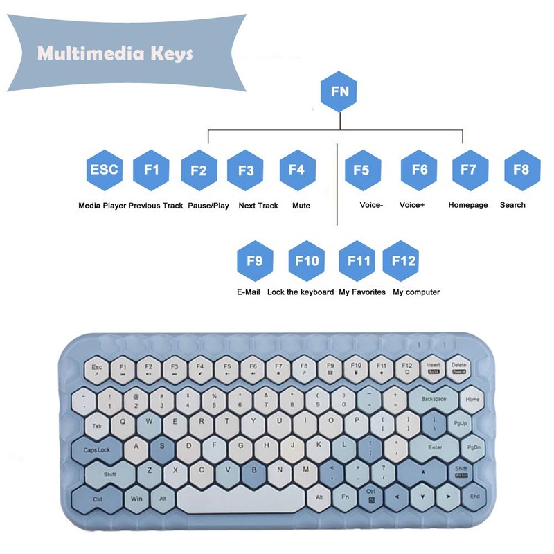 Onlywe Wireless Keyboard Mouse Set,2.4G Wireless, Sweet Color Prismatic 83-Keys,Silent Multimedia Keyboard and Optical Mouse Combo with USB Receiver Office Home Use Laptop PC for Win XP/7/8/10 (Blue)