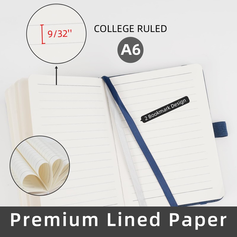 - Hardcover Small Leather Notebook: The notebook features a high-quality leather cover that is waterproof and wear-resistant, giving you a premium tactile experience. A6 paper, college ruled notebook, suitable for home, school, office, travel and other occasions.