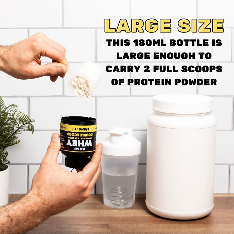 - Innovador recipiente para llavero: este mini llavero de proteína de suero es lindo y funcional. Utilízalo como soporte de preentrenamiento, un recipiente de almacenamiento de proteína en polvo o un recipiente para suplementos de tu elección (BCAA, creatina y más) por lo que es un accesorio divertido para estilos de vida activos.