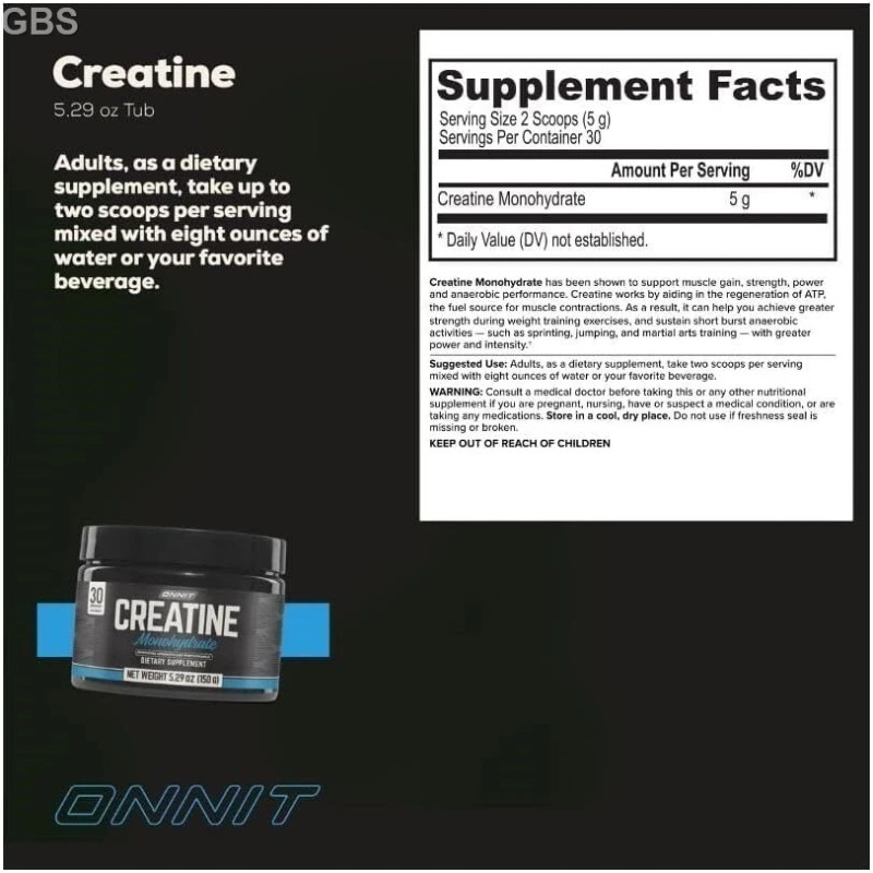 - Supplemental Creatine Monohydrate: Strength and Power Are Promoted by One 30-Serve Tub of ONNIT Creatine Monohydrate Powder: ONNIT Creatine powder helps with body composition changes, increases strength and power, and provides energy for anaerobic training.