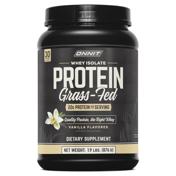 ONNIT Grass Fed Whey Isolate Protein Powder, Vanilla Flavor, Whey Protein Powder Dietary Supplement to Support Muscle Gain and Workout Recovery, 30 Servings per Tub, 30.7 oz