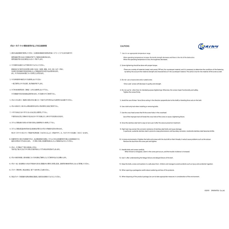 | Brand: | オノカツ\FASTENER & MECHANICAL PARTS |
