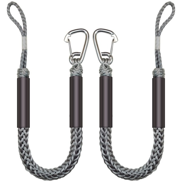 ONOSHIP 316 Stainless Clip 3 Feet Boat Bungee Dock Lines 2PCS Boat Accessories Marine Grade Quickly Mooring for Jet Ski, SeaDoo,Kayak, Pontoon Boat, Dinghy 3~4.5 Feet (Grey, 3 Feet) | ONOSHIP