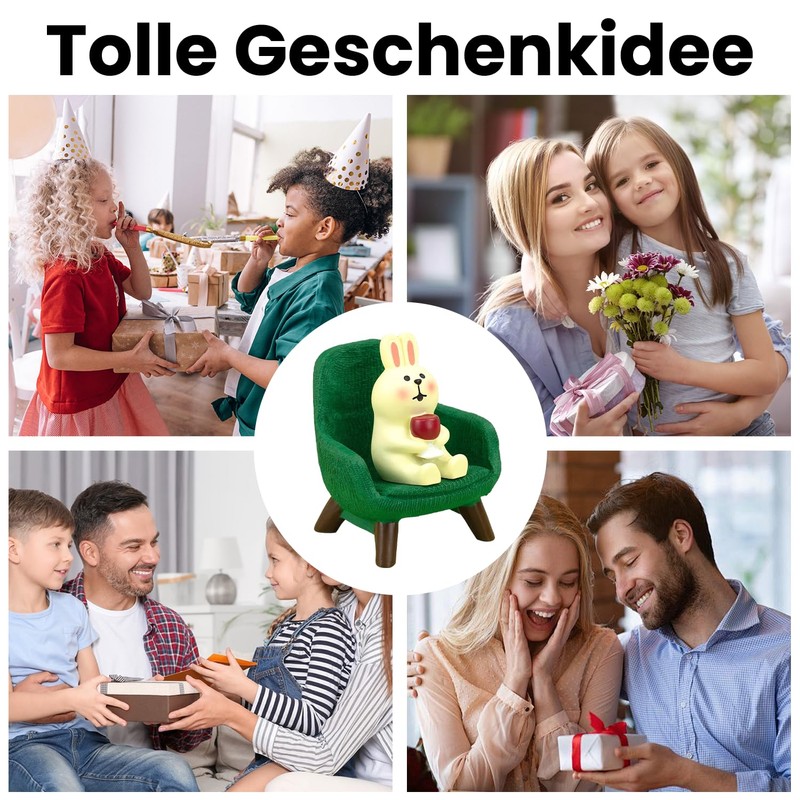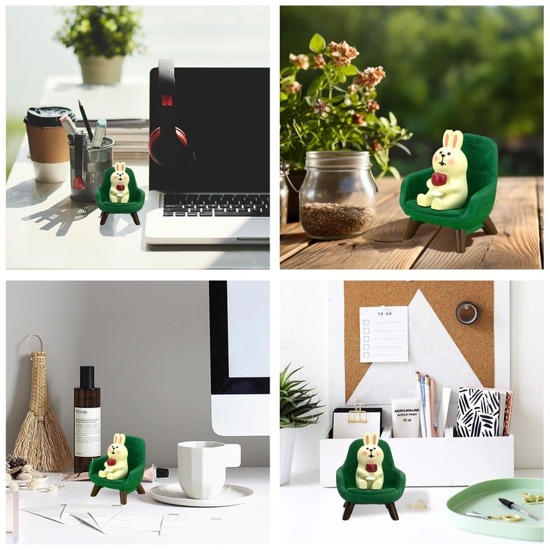 - CUTE RABBIT ORNAMENT Get home this decorative bunny figurine designed in the shape of a rabbit holding a wine glass and sitting on a mini sofa. Its cute and fun design will brighten up any room and make everyone smile