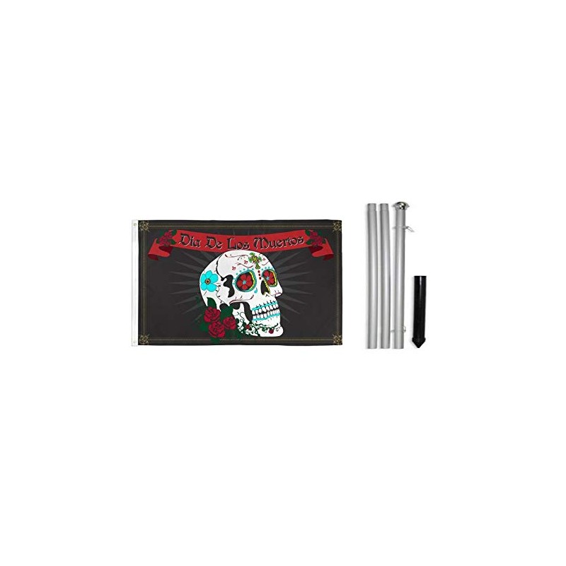 OnPoint Wares Day of the Dead Polyester Flag 3 X 5ft With 10ft Aluminum (Silver) Outdoor Flag Pole & Ground Spike Kit-FI