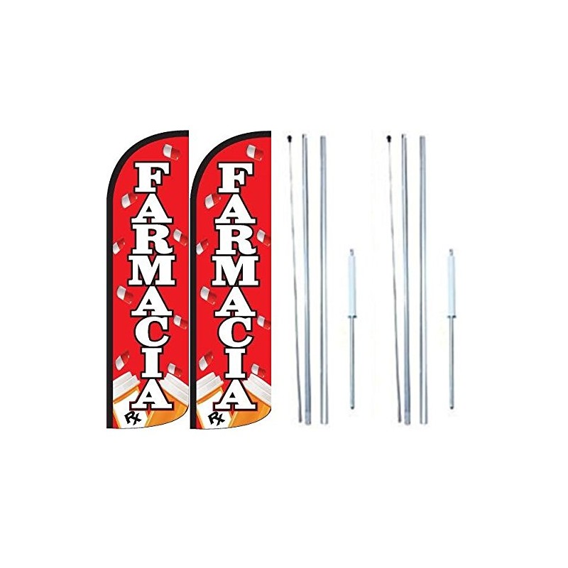 OnPoint Wares Farmacia King Flag Sign With Complete Hybrid Pole set - Pack of 2