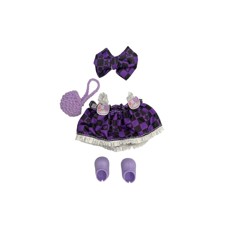 ONRRI - Juego de ropa de muñeca de 17 cm con lazo para el pelo, zapatos y bolsa de ganchillo para jugar a la moda