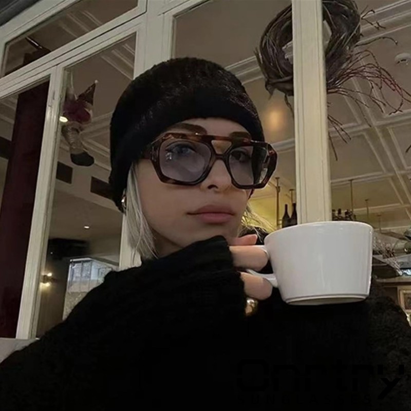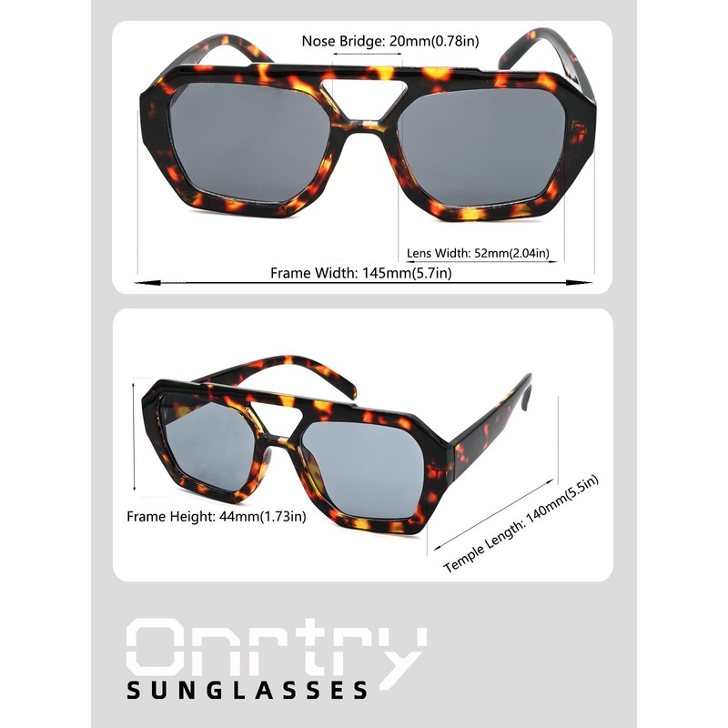 Onrtry Trendy Hexagonal Aviator Sunglasses for Women Thick Square Frame Double Bridge Sun Glasses(Leopard/Grey)