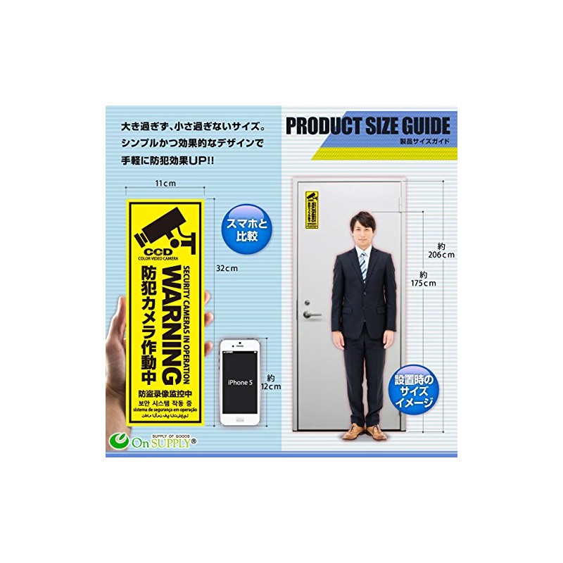 - ★Quality controlled by a Japanese company! Reliable quality. Includes authenticity and reliable CCD mark. The multi-language specifications make it highly effective for those who have frequently released foreign crimes. ★ Supports 6 languages in Japanese, English, Chinese, Hungle, Portuguese, and Arabic. ★ Adhere it to your doorway such as residential or stores, or in a prominent place on your windows for improved security. ★ Appeals high security awareness, and decreases the desire for robbery and thieves. ★ Durable PP plate for long-term installation and cost-effective