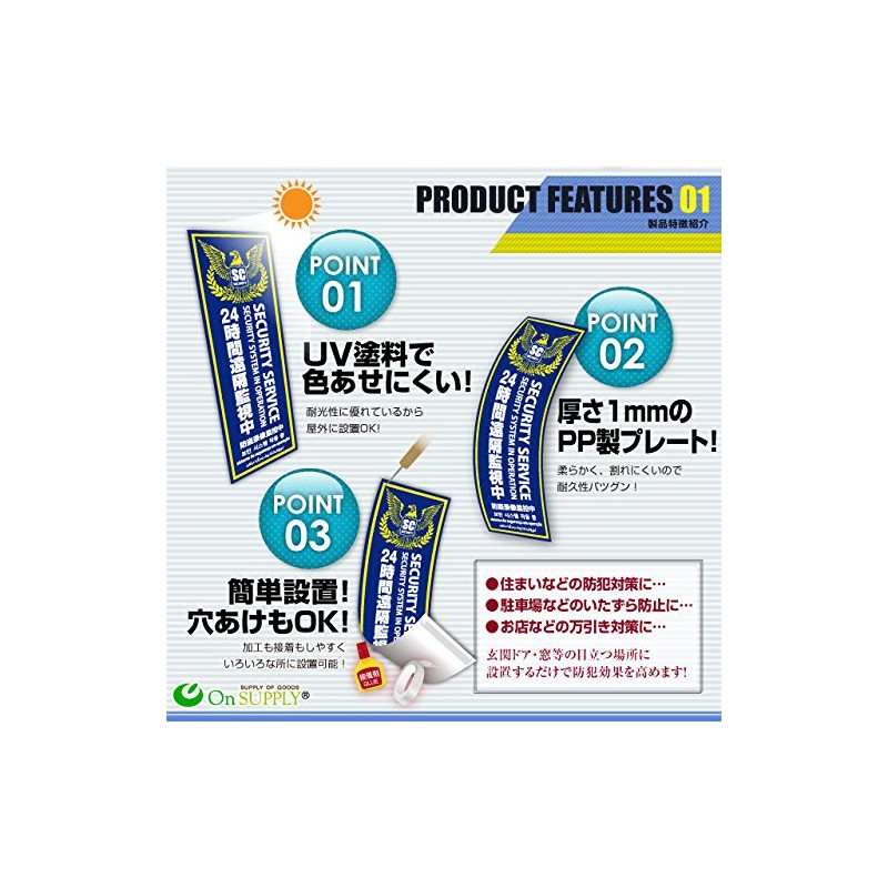 - UV protection paint is printed, so it can be installed outdoors. Soft and durable polypropylene plate type that won't break easily. Very easy to install because it is easy to process and bond. It is easy to install in a variety of places such as entryways, windows, walls, etc. It is sized to stand out. You can also hang it on a fence or hang it by opening a hole and threading it through a string. Hang it on a security camera for even better effect! Choose from a wide variety of 6 types of vertical and horizontal types. Of course, it is waterproof, so it is safe even if it gets wet from rain or snow