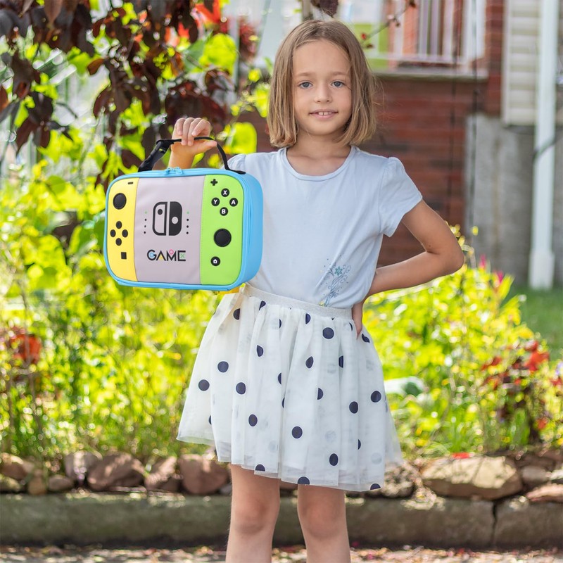 ONTESY Jungen Leather Lunch Box - Reusable Game Lunch Bag Thermal Bag Mini Cooler for Boys, Girls, Children, Toddlers, Teenagers, Men, Women (Black)