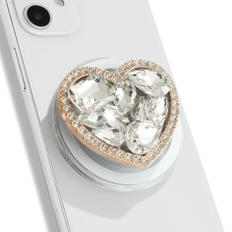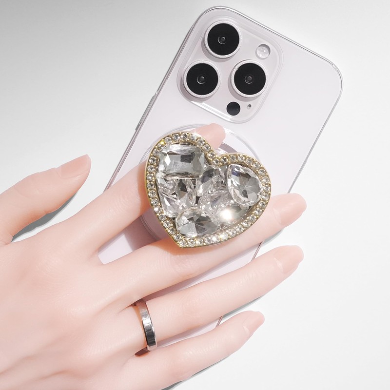 OnTheGrip Compatible with Magsafe Cute Cubic Diamond Heart Shape Design Collapsible Mobile Phone Grip Stand Holder for Smartphone Tablet Cell Phone Accessory (Gold Small)