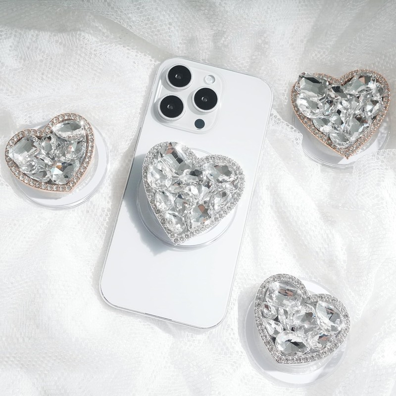 ✔️ 1pc Cubic diamond flower phone grip & Accessory box & Adhesion Enhanced Film