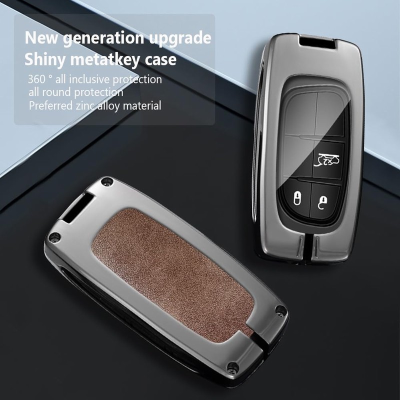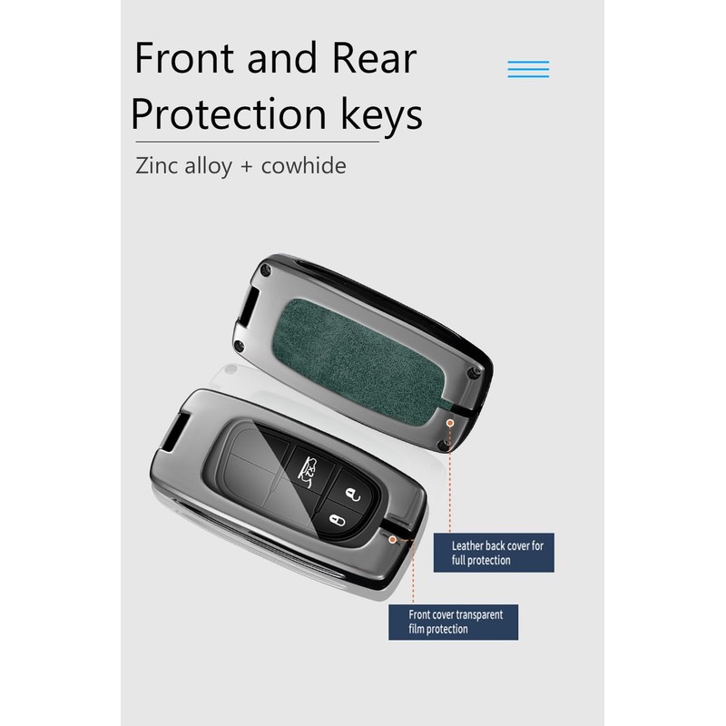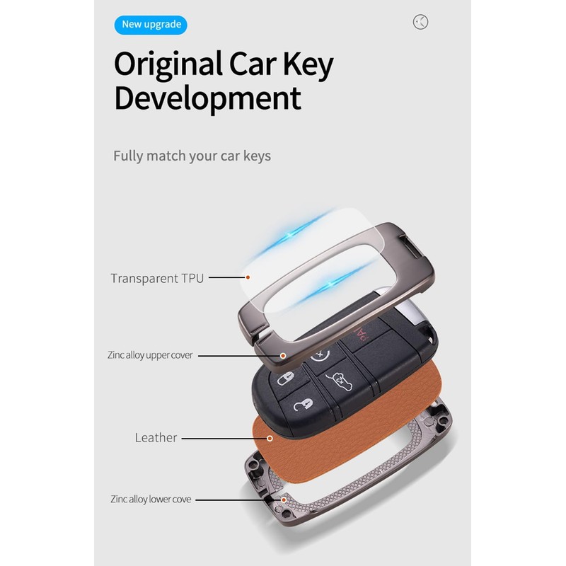 - Material Composition:Car key case features a sturdy METAL FRAME and LEATHER BACK,the front of the key case is equipped with a clear TPU membrane, allowing you to easily see and access your key buttons.