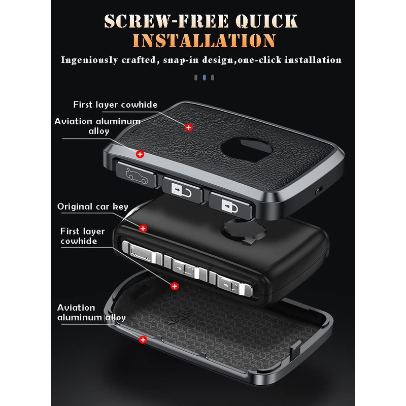 - Material: high-quality aluminium alloy + selected first layer cowhide leather, double layer materials, 360° protect your car key from damage. Make your car keys look beautiful and stylish.