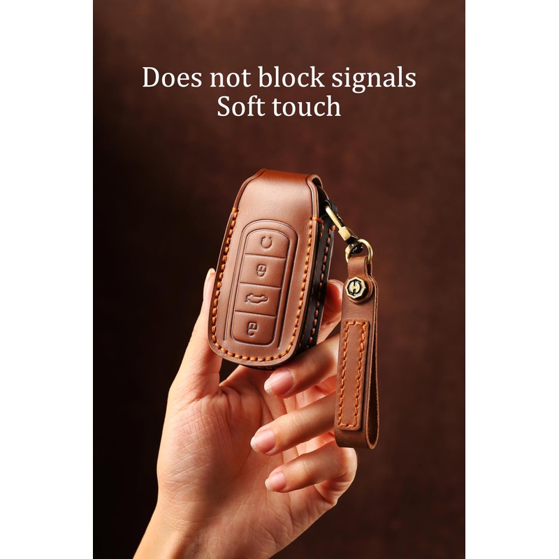 ontto Car Key Case for Chery Tiggo 8plus Tiggo 8 New 5 Plus 7pro Max Omoda 5 C5 Handmade Leather Key Case Holder Key Fob Smart Key Shell Protector Accessories 4 Buttons, A-brown