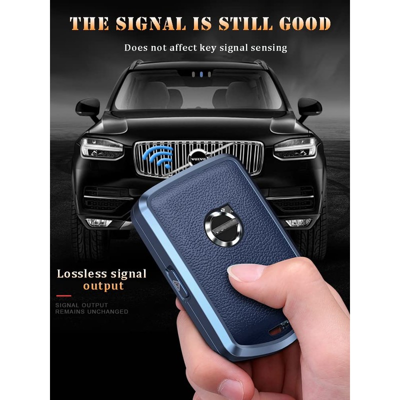 ontto Car Key Case Key Cover Fits Volvo S60 S90 XC40 XC60 XC90 V60 V90 S60 S90 T5 T6 T8 Polestar 1 2 Remote Control Key Fob Metal Leather Key Protection Case 4 Button A Blue, A Blue