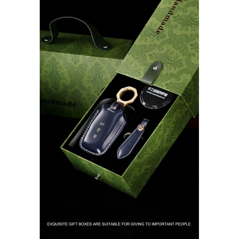 - 【Gift Box Packaging】- The product is uniformly packaged in a green gift box, making it a great gift. Package includes key cover + key chain, leather conditioning oil and instruction manual.