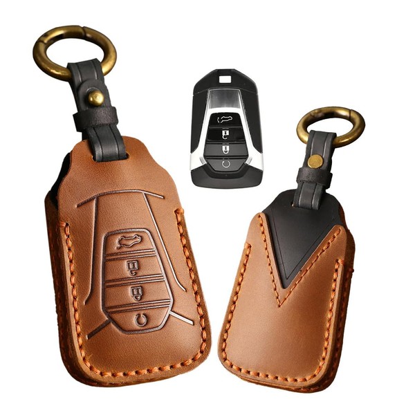 ontto Keyless Entry Remote Key Cover Fit for Isuzu New MU-X X Series DMAX D-Max X-Terrain Genuine Leather Key Fob Case Car Key Holder Brown