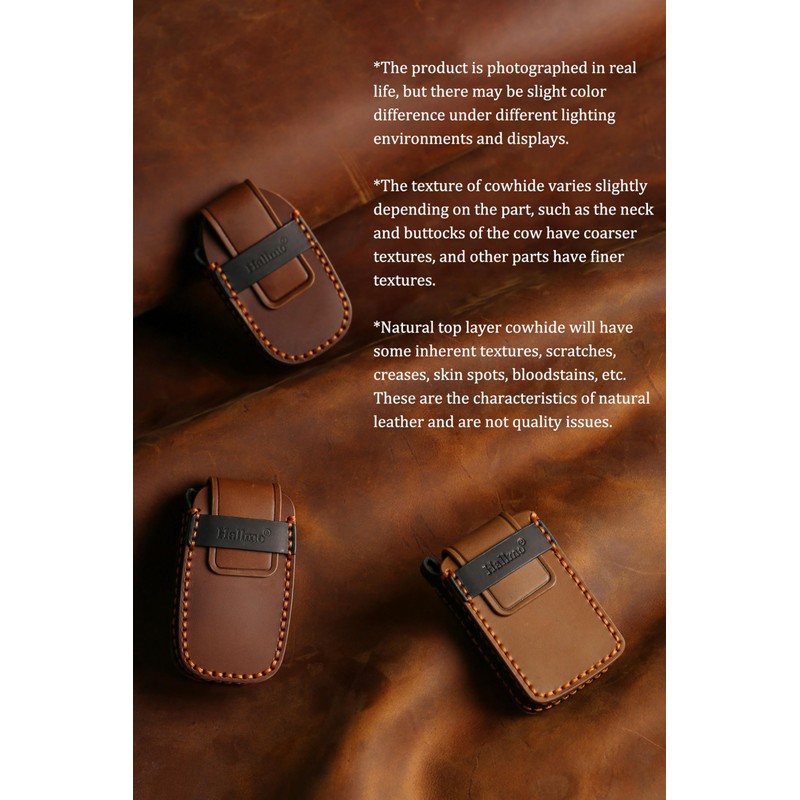 - 👉Material: The key case is made of cowhide leather (nickname: crazy horse leather). If you press lightly on the epidermis, a discolouration effect occurs. It is mainly the first layer of cowhide embryo, which belongs to high-quality leather. Mainly popular in Japanese, European and American markets.