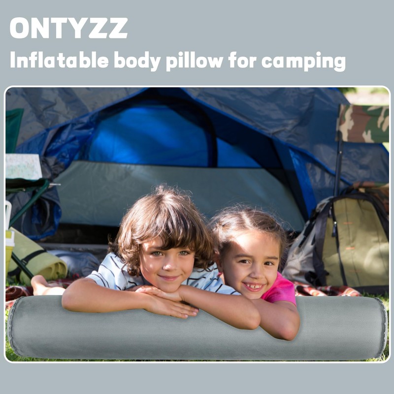 ONTYZZ Inflatable Long Body Pillow, Long Pillow for Bed, Oval Bolster Pillow for Good Sleeping and Back/Neck Support, 2pcs Grey