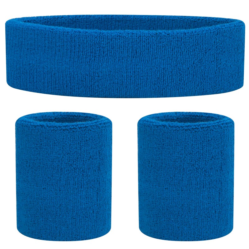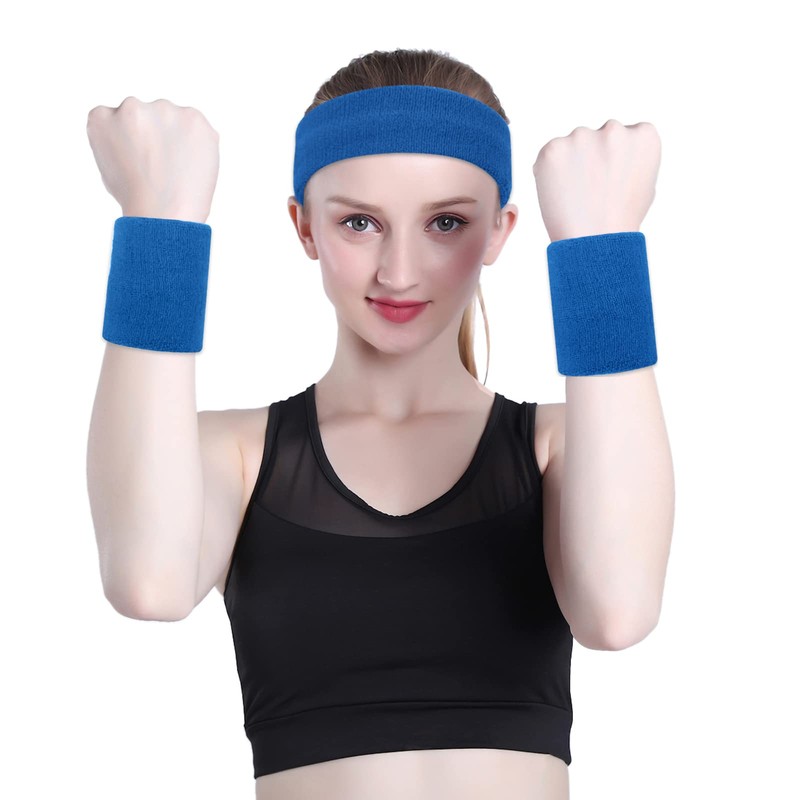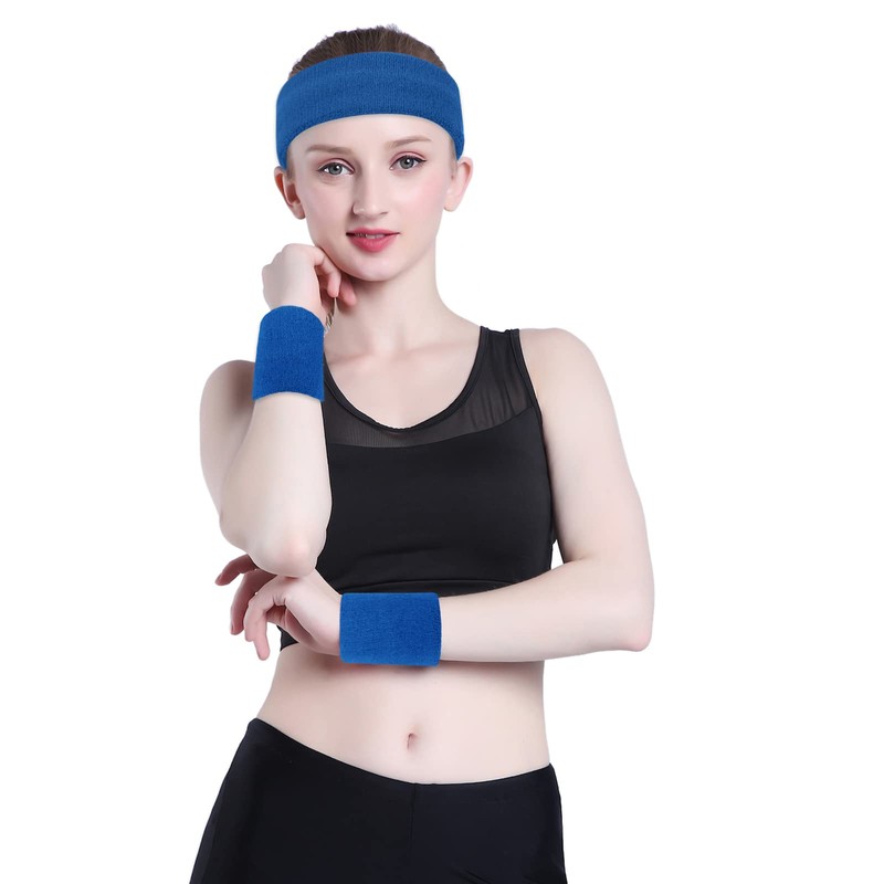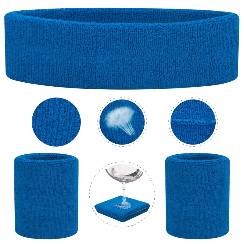 ONUPGO Sweatband Set Sports Headband Wristband Set Sweatbands Terry Cloth Wristband Wrist Sweatband Headbands Moisture Wicking Sweat Absorbing Head Band (Blue 9252)