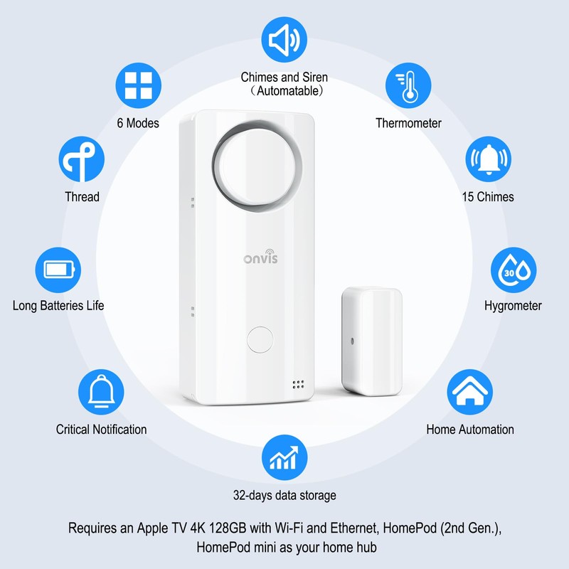 • 【Thread 】The Onvis door sensor now is upgraded to support Thread - This allow you get instant alerts when windows or doors open in your home.It can control other HomeKit-accessories when you are away home which requires HomePod mini and Apple TV
