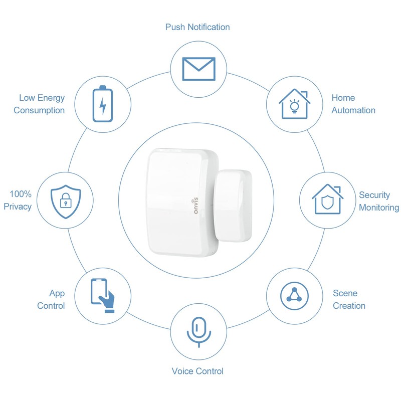 - 【Onvis Door Sensor, Keep Your Home And Family Safe】 Onvis door sensor will send you notifications when there's a ON/OFF state change, reminding you whether the door or window is open or closed, 24/7 door sensor will monitor home, office, garage, warehouse, and more.