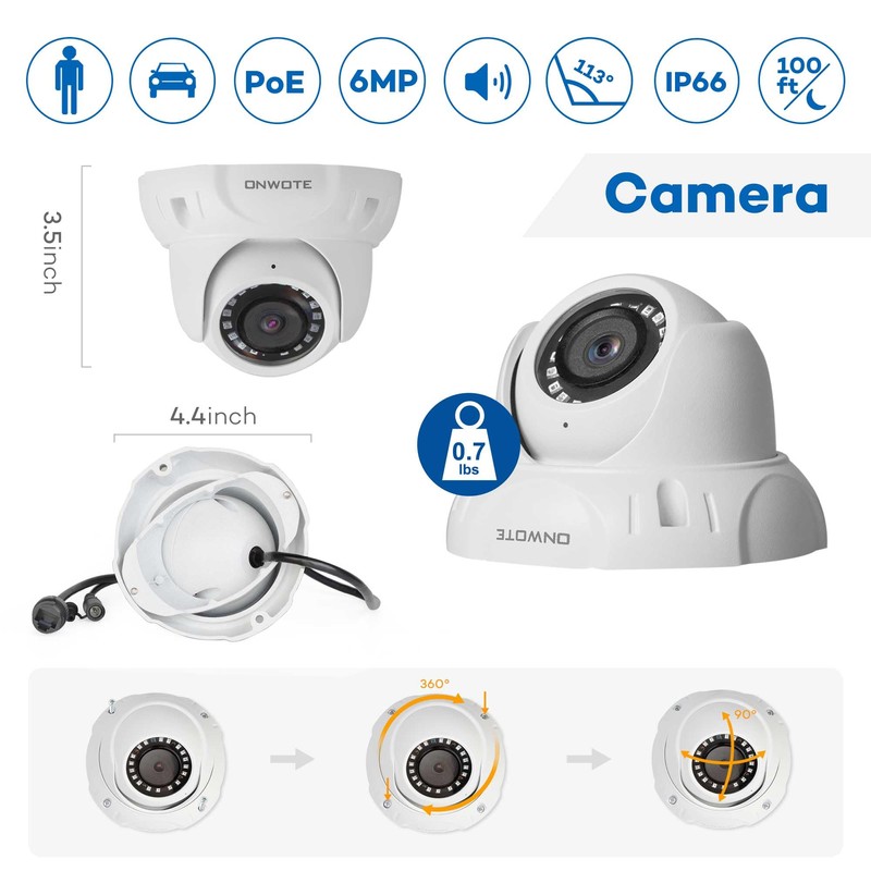 - Add-on to ONWOTE System-- work with ONWOTE 12MP/ 8MP PoE NVR or PoE switch with 48V-54V power supply.