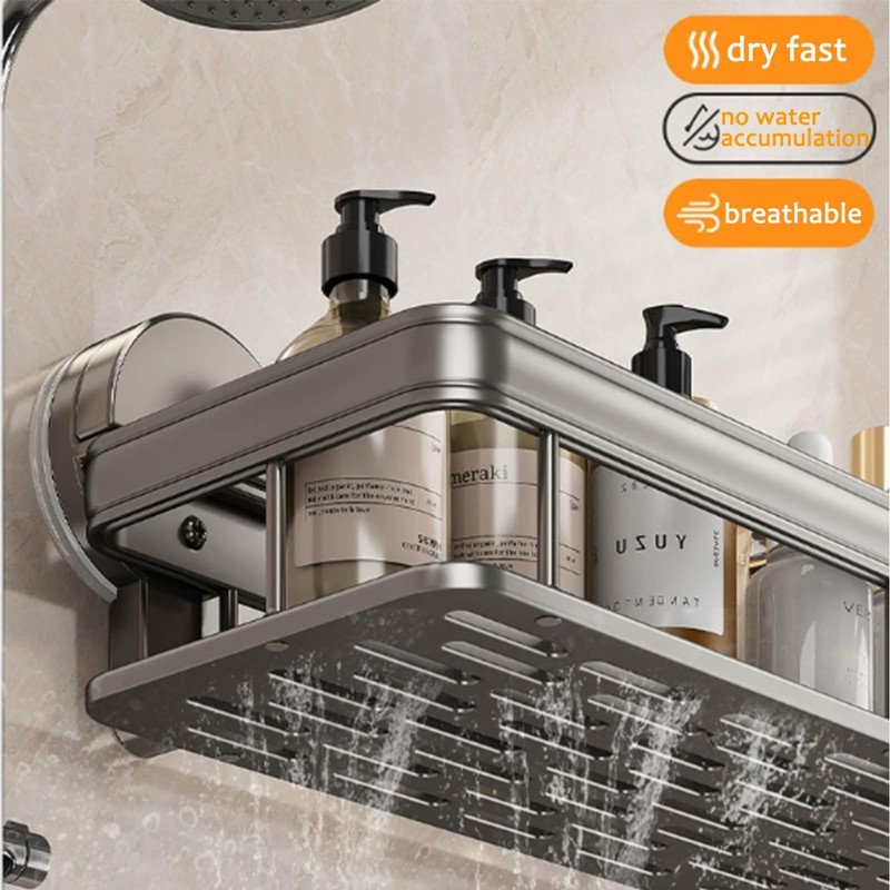 - Anti rust material: The shower rack is made of high quality space aluminum material, holds a maximum load of 22 pounds,with a solid structure , rust-proof, waterproof, moisture-proof, corrosion resistant, anti-scratch, not easy to dent or crack. Its rust-resistant properties ensure it withstands the humidity and moisture of your bathroom or kitchen, maintaining its strength and beauty over time.