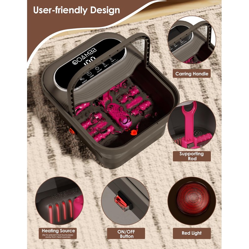 - [ Collapsible Design & Handle&Support Rod ] - The heated foot spa tub boasts 6 non-motorized massage rollers for a deep-tissue experience. The removable pedicure stone allows for at-home care and removal of dead skin. Perfect Christmas ! Mother's Day !