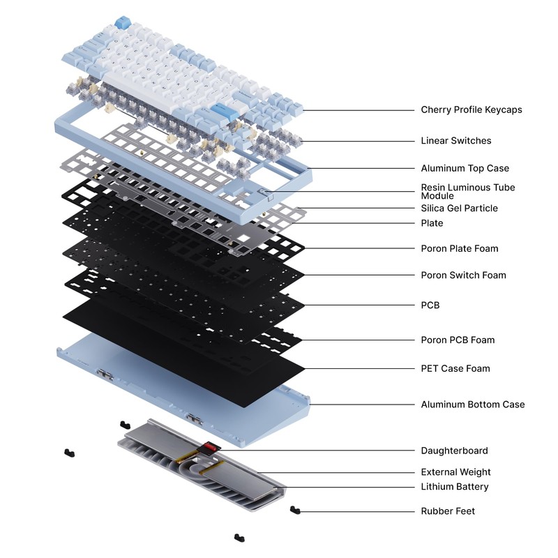 - Quickly Disassembled & 2 Mounting Systems: The ND TKL 80% percent keyboard adopts screwless quick assembly structure, using the ball catch system, Can be quickly and easily disassembled and assembled. 2 Mounting Systems: Silica Gel Particle Mount, Elastic Silicone Mount. 2 different mounting systems give you a different typing experience