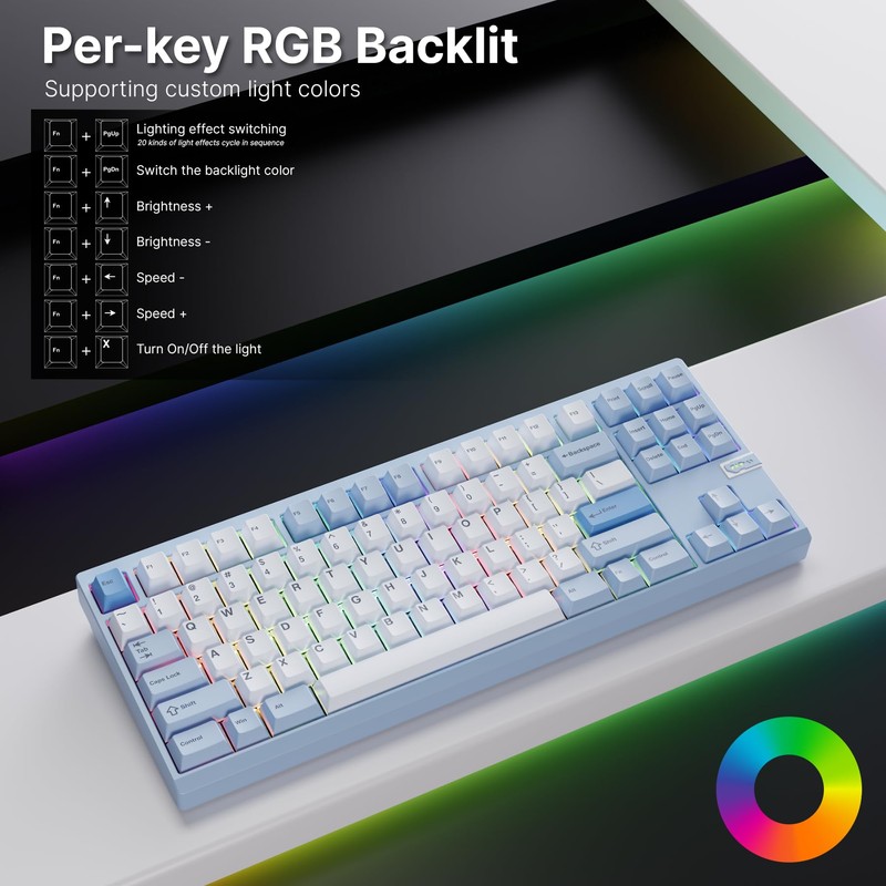 - PBT Doubleshot Keycaps: This wired / wireless mechanical keyboard is equipped with PBT keycaps, which are doubleshot for long-lasting legends that won't fade over time; Cherry profile for a comfortable typing experience, built to withstand intense gaming sessions and everyday use