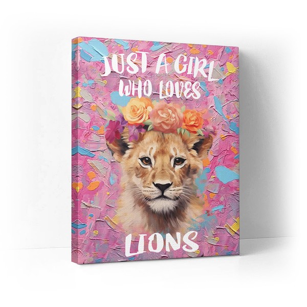 Ooeiiiy Cute Pink Lion Wall Decor - Just Girl Loves Lion Picture Poster - Modern Prints Painting Framed Artwork For Bathroom, Toilet, Office, Bedroom - 12''X16''