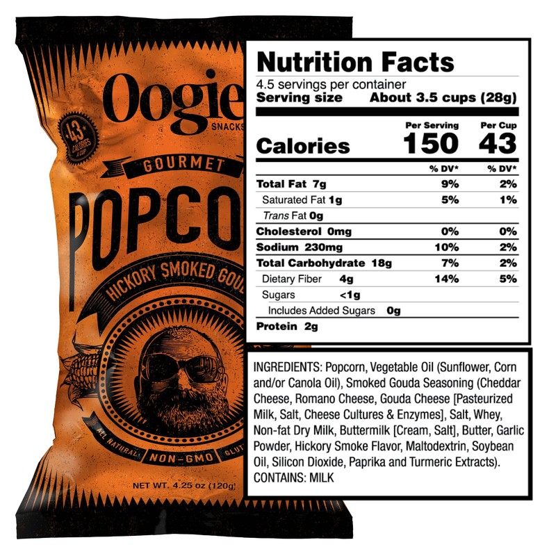 Oogie's Gourmet Popcorn | Hickory Smoked Gouda Flavor | Gluten Free Popcorn Snacks | 4.25 Ounce Big Bag | 4 Pack