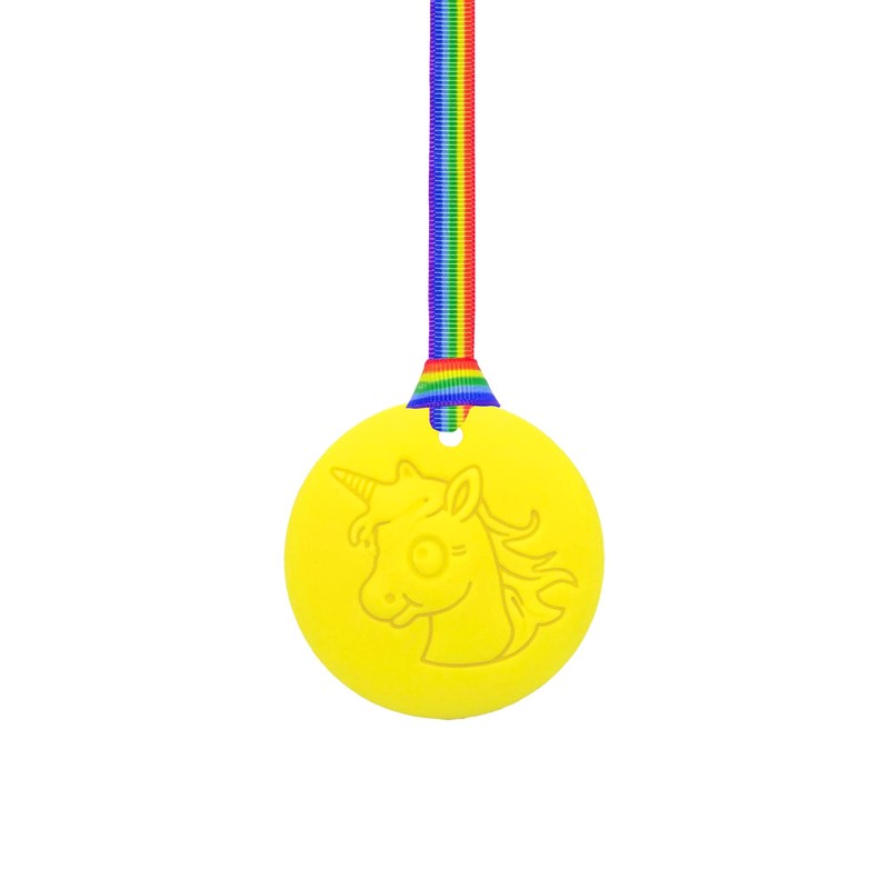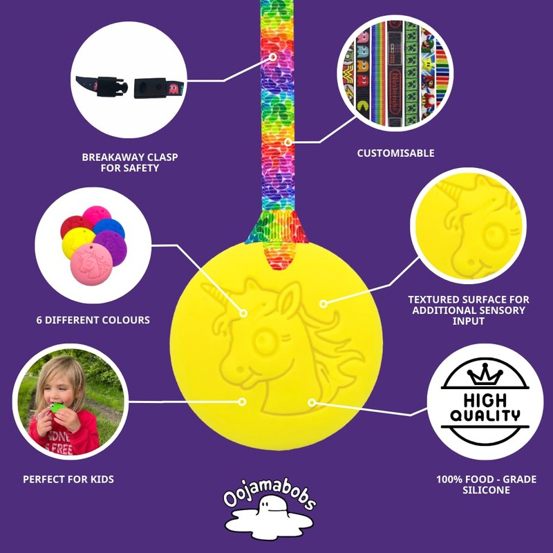 Oojamabobs Unicorn Chew Necklace with Lanyard - Yellow - Sensory Chew for Kids with Autism, Anxiety & ADHD –Sensory (8 lanyard designs available) (Rainbow Pride, 70cm lanyard)