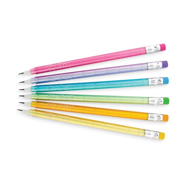 Stay on top of your writing game with Stay Sharp Graphite Pencils. Each set Stay Sharps come with 6 pencils in candy colored rainbow barrels with refillable pencil leads. Just put the used lead on top and a new lead pops out in front. There's no need to sharpen pencils anymore! No. 2 graphite.