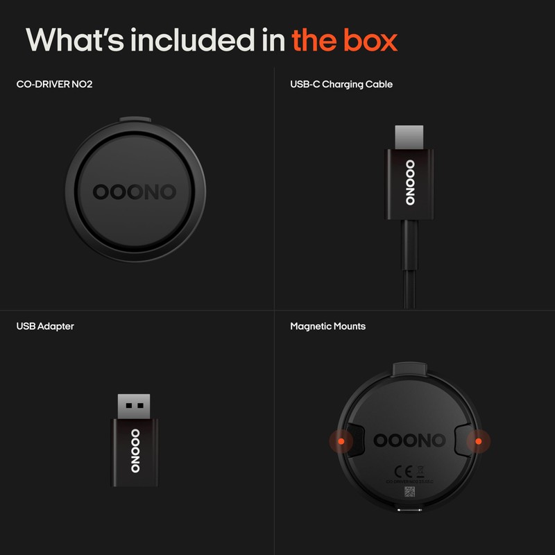 OOONO OOONO CO-DRIVER NO2 [NEW MODEL 2024] - Optimised Traffic Safety Alarm - Warns of Speed Cameras and Road Hazards - Rechargeable - LED Indicator - CarPlay & Android Auto Compatible