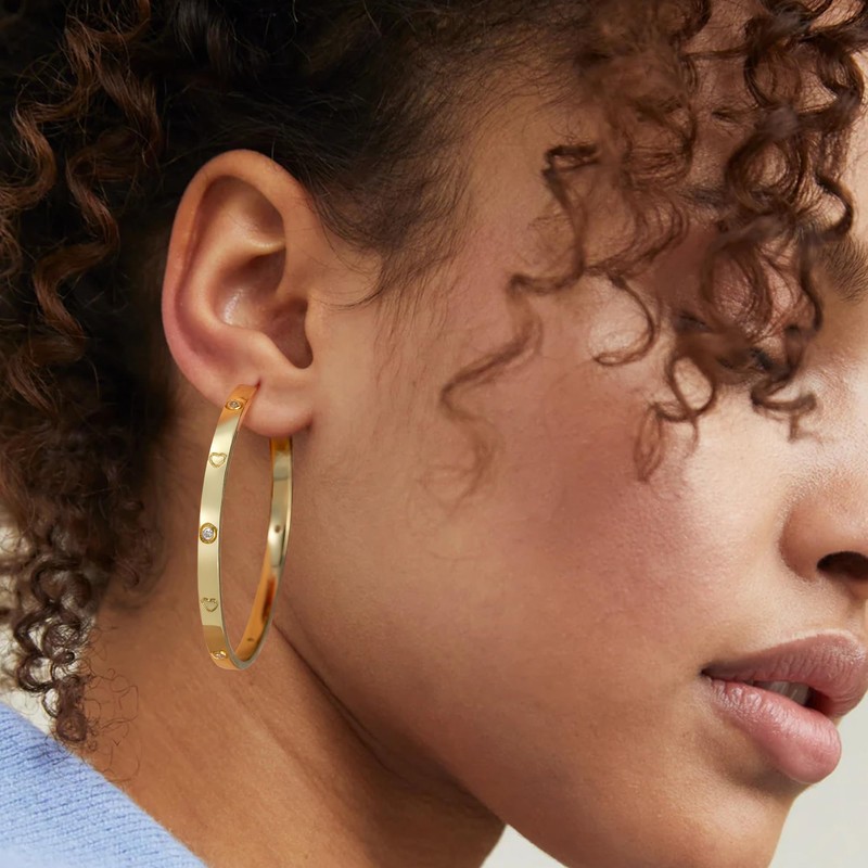- Gold Hoops Earrings for Women: These gold hoop earrings with zirconia and heart engraving have a highly polished, smooth and shiny surface. These lightweight large hoop earrings for women are stylish and elegant, adding more glamor to your look. The simple design complements most of your outfits and is the perfect finishing touch to any look.