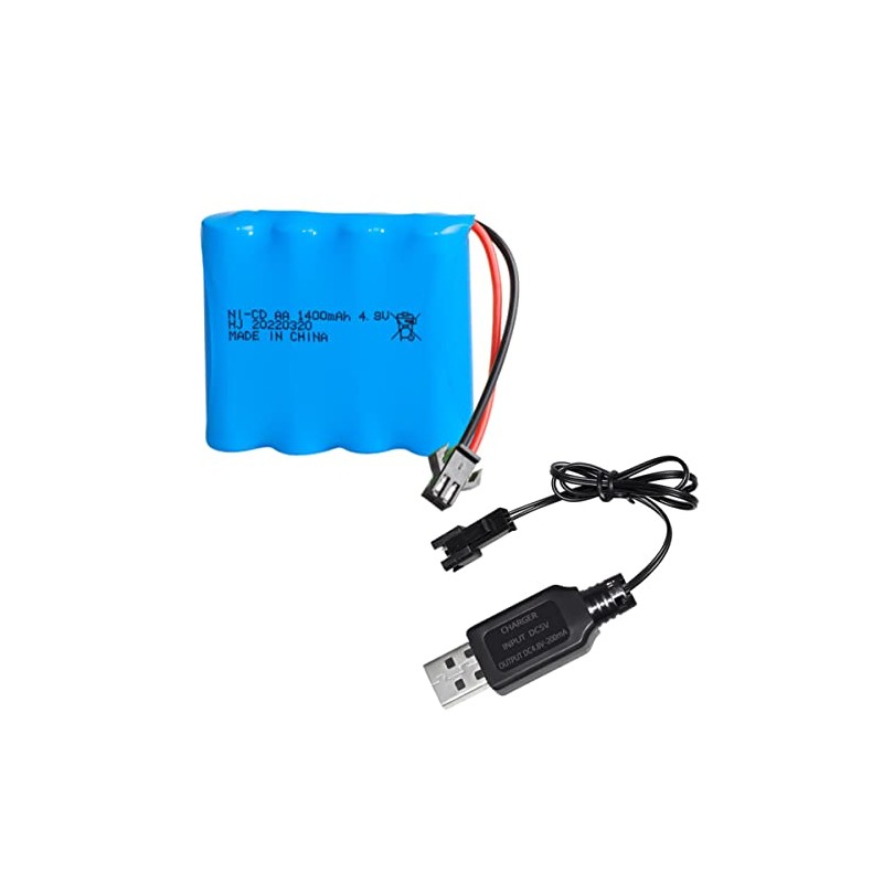 OooSure Rechargeable Ni-CD Battery AA X 4 1400mAh (Update from 500mAh) 4.8V SM-2P Plug for RC Toy Household Electric Appliances Lighting Equipment with Charging USB Cable