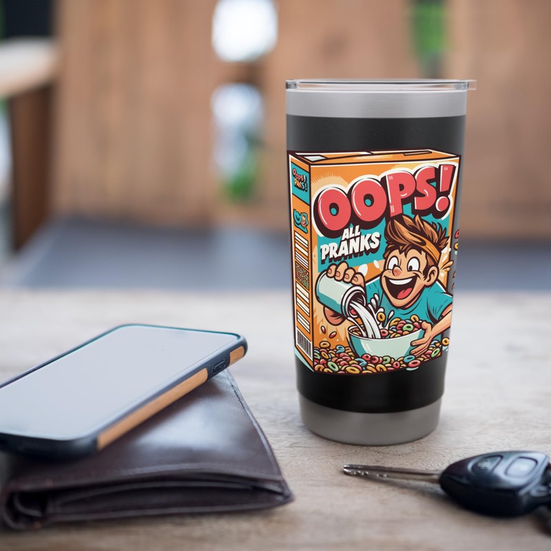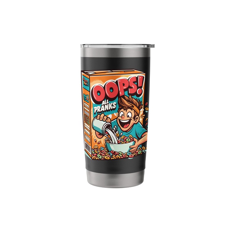 Oops All Pranks Fun Cereal Box Parody Stainless Steel Insulated Tumbler