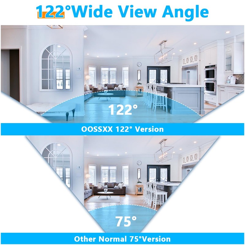 - {122° Ultra Wide-Angle Lens Equipped} Optical wide-angle lens with multi-layer lens, provides you about 122° wide viewing angle and reduces dead ends of surveillance areas.