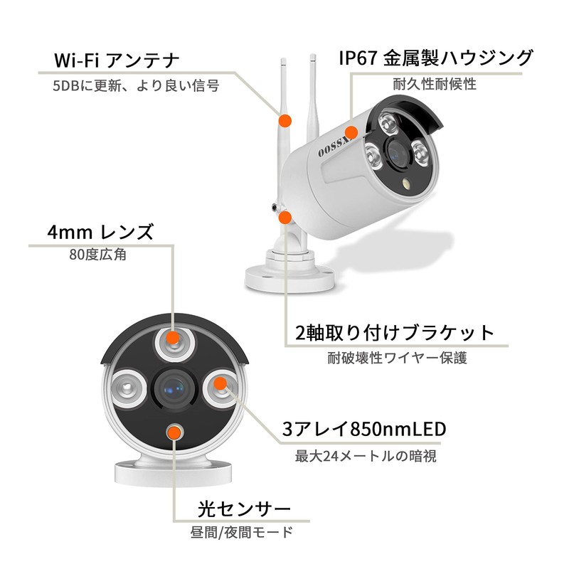 OOSSXX Extended Camera, Outdoor Security Camera, 3 Megapixels, IP67 Waterproof, Dustproof, WiFi Camera, Night Vision, Wireless Surveillance Camera, Double Antenna, Qualified Invoice Issuance