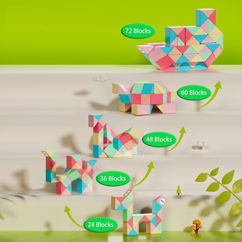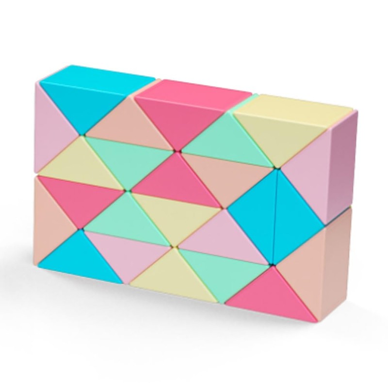 - 1.【UNIQUE CREATIVITY】This 3D puzzle toy consists of 24 identical wedges that are shaped like prisms.You can transform it into a wide variety of shapes, such as straight line,pet dog, ball, snake, dog, key or ostrich etc, by twisting the 3D puzzle made of triangle blocks, bringing challenges and fun to your fingers and brain.
