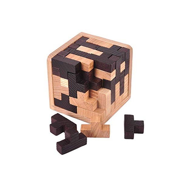 Oostifun Gobus 54 Pieces Wooden Brain Teaser Puzzle T Shape Building Blocks Geometric Jigsaw Puzzle Educational Toy Black and White Puzzle for Kids Adults