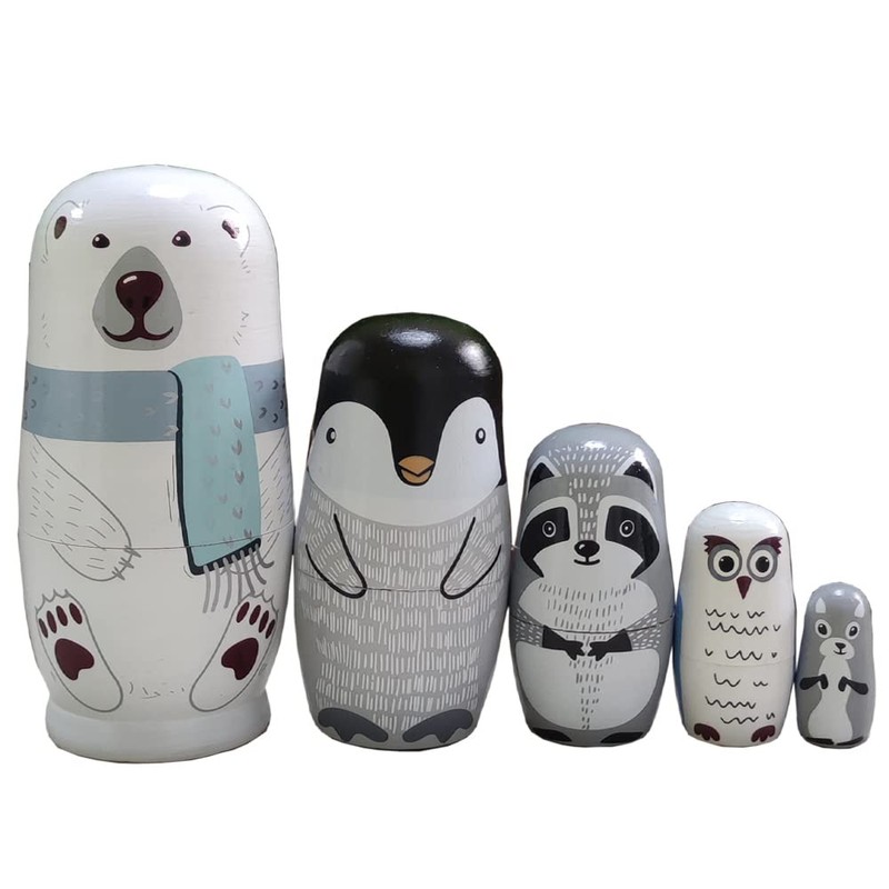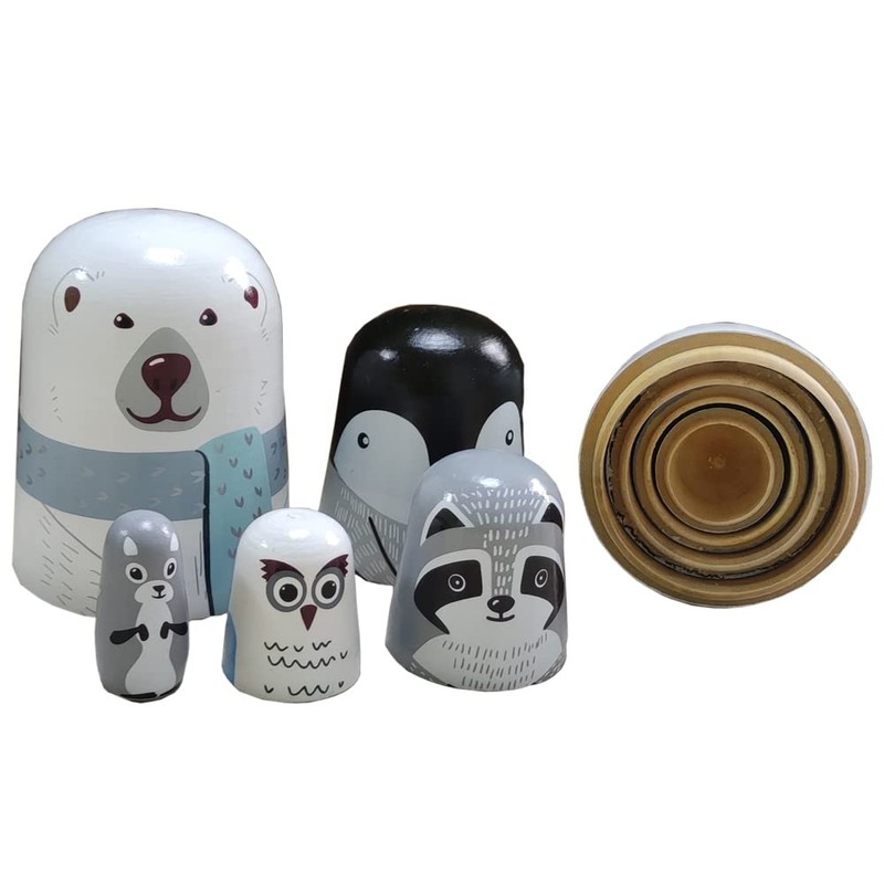 - ** Oostifun Gobus 5pcs wooden cute lovely animals (including Polar bear, Penguin and other cute animals ) patterns beautiful girl nesting doll play sets wonderful handmade kids gifts and decoration toy.
