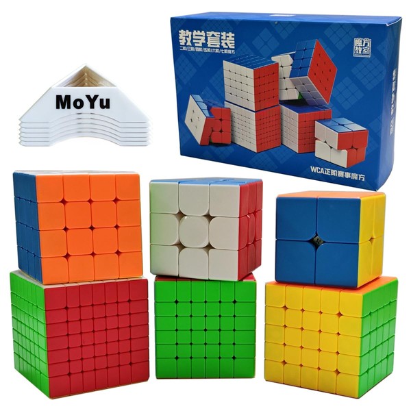 Oostifun MoYu MOFANGJIAOSHI CUBING CLASSROOM MFJS WCA 234567 Teaching Set Puzzle Bundle 2x2 3x3 4x4 5x5 6x6 7x7 Competition Cubes Set with Gift Packing + Six Cube Tripods(Multi Color)