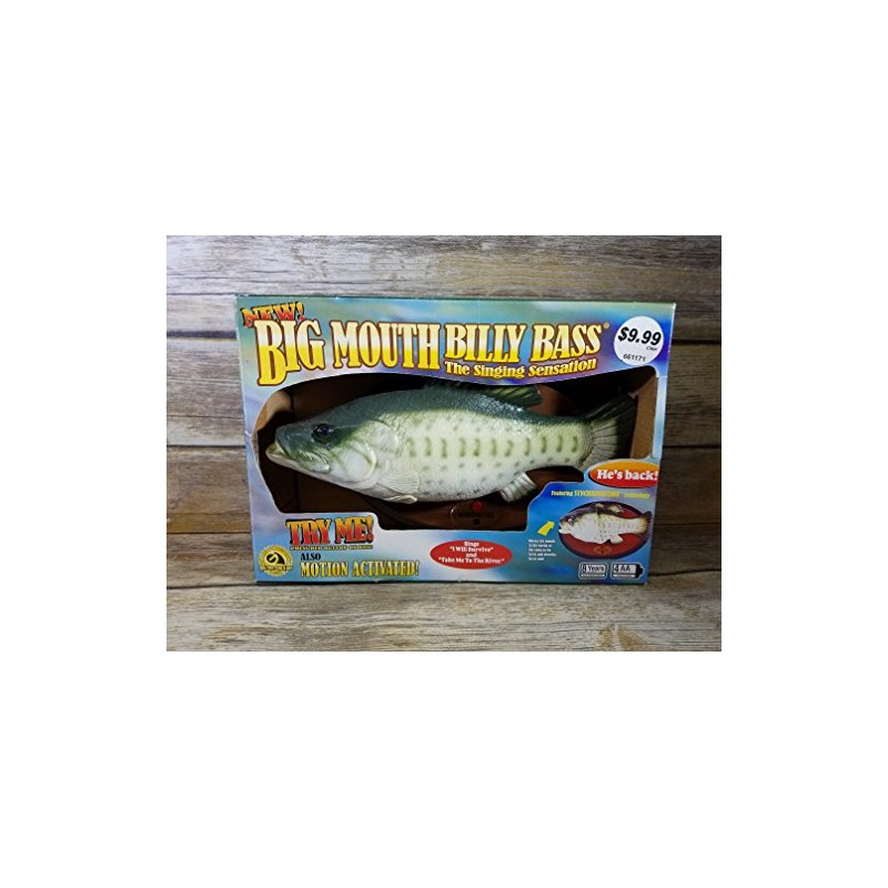 The OOTB Big Mouth Billy Bass is an animatronic singing prop, representing a large mouth bass. The fish is made of latex rubber stretched over a plastic mechanical frame; at first glance it appears to be a mounted game fish. Designed by Gemmy Industries, it turns its head towards a person, facing them, and then wiggles its tail on its trophy plaque and sings two kitschy cover songs, "I Will Survive" and "Dont worry be happy". The singing mechanism is activated by a motion sensor, intended to startle a passerby. A button is also present to activate him. Billy Bass is approximately 9" in length. Though batteries are included for demonstration purposes only, new 4 AA batteries are required (not included). Features Synchro-Motion, a cutting edge technology in animation which utilizes specially designed electronic components to synchronize the motion of the mouth to words or phrases, making an inanimate object come to life - Magically!